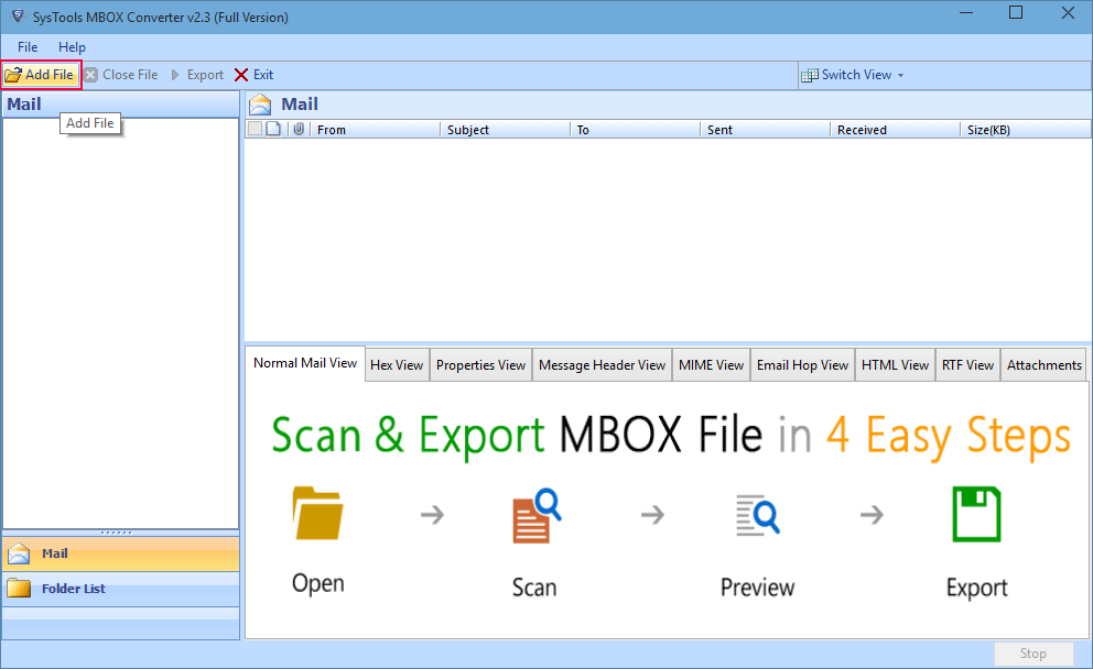 | Export MBOX to PST, EML, MSG and NSF | First 25 Emails | ||