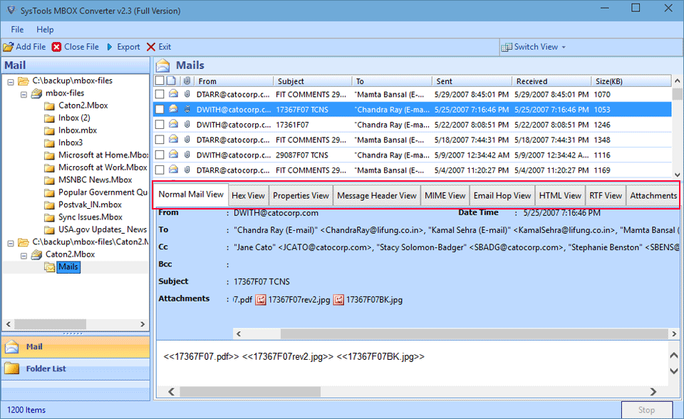 When the tool executes Mac MBOX file to PST conversion process, it discovers that email properties, its formatting & content remains the same as it was before so get complete email data. The tool offers conversion from Mac MBOX to Outlook PST/MSG/EML/NSF/HTML/PDF.