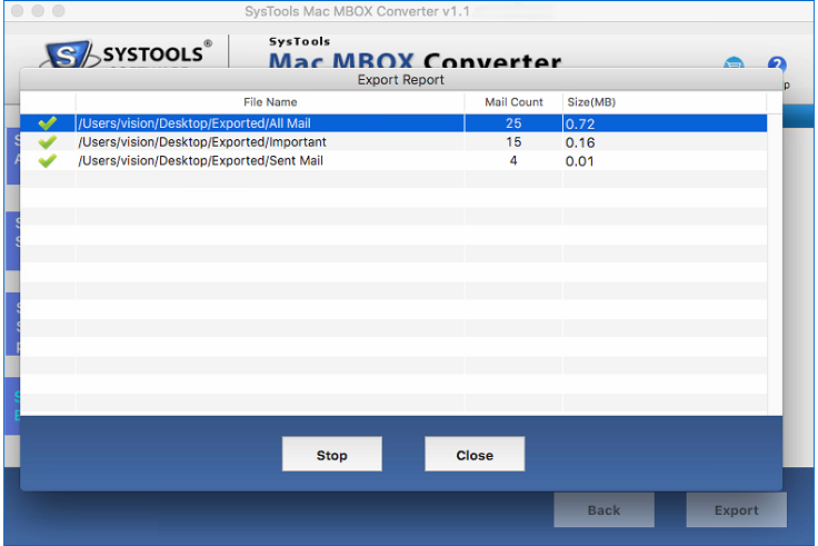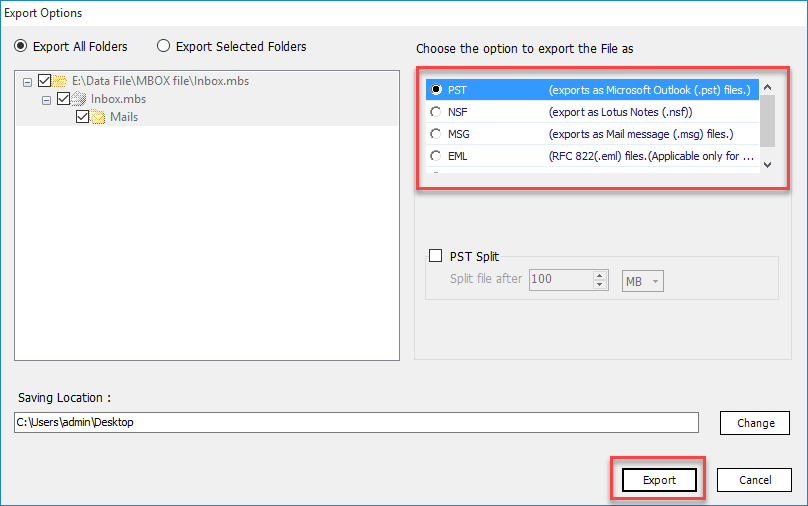 After giving the destination folder path, Click on Export option.